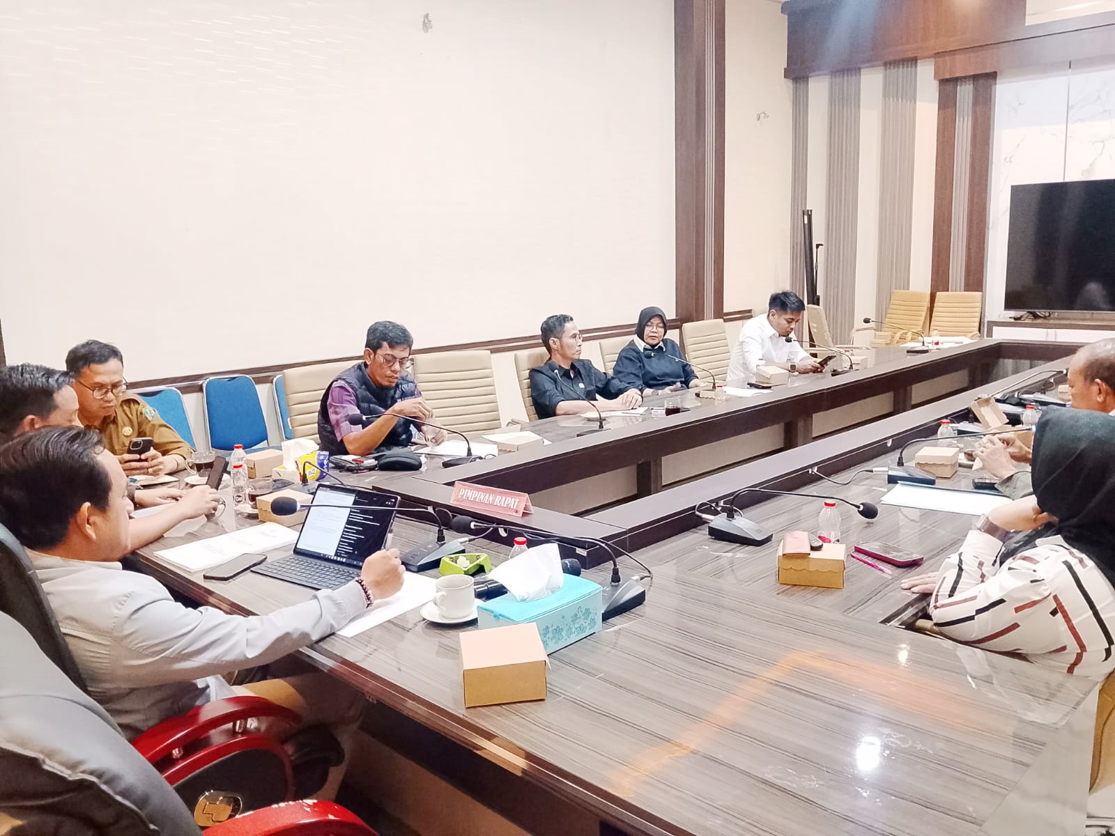 Wakil Ketua I, Putu Purjaya, SH saat memimpin Rapat Kerja Gabungan Komisi di Ruang Aspirasi, Senin (02/02/2026), dihadiri oleh Wakil Ketua II, Muh. Dasri, S.Pd., M.A.P, Sekretaris Dewan Mansur, S.Sos., M.A.P, dan sejumlah anggota dewan.